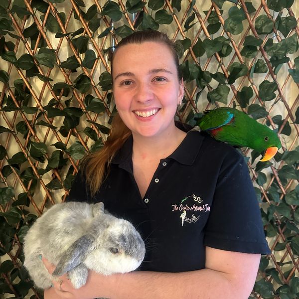 With over 10 years of experience as a vet nurse and a lifelong love for animals, Rosie is the heart and soul of the Exotic Animal Inn. Raised on property and surrounded by pets her entire life, she brings unparalleled expertise and passion to every aspect of animal care. Rosie tends to a wide variety of animals in her own home, including two border collies, three cats, seven budgies, six cockatiels, five quails, two rabbits, a turtle, two bearded dragons, a gecko, 3 chickens, and an assortment of fish. When she's not caring for her beloved collection of creatures, she enjoys horse riding, gardening, doing puzzles, and finding moments to relax. Rosie’s hands-on experience and deep connection to animals ensure that all creatures at the Exotic Animal Inn receive the highest level of care and attention.